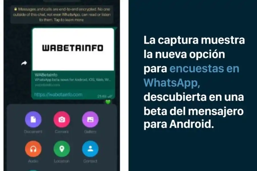 La opción fue encontrada en una versión beta para Android (2.22.10.11). Un detalle importante: en WhatsApp, las encuestas estarían disponibles únicamente en los grupos.