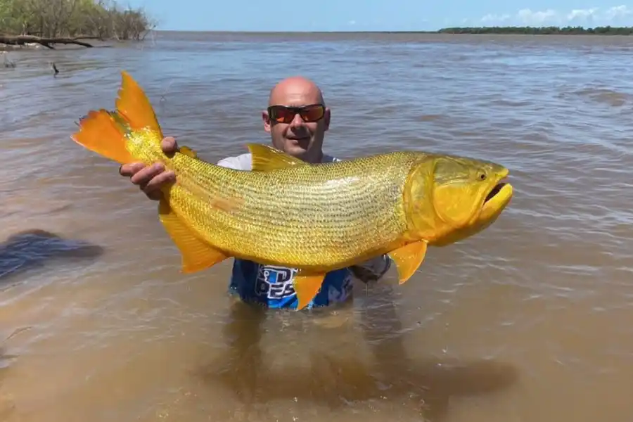 En una jornada de pesca inolvidable en la localidad de Esquina, Corrientes, un turista proveniente de Chivilcoy logró capturar un ejemplar de dorado de más de 15 kilogramos, según contó a este medio el guía de pesca local conocido como «Japo», de Posada Brillo de Luna.