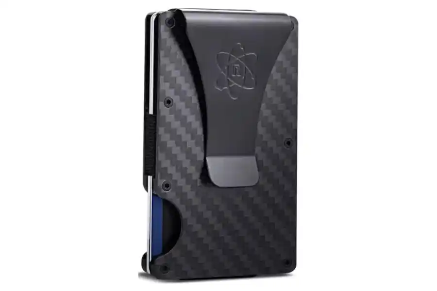 Destaca su fino diseño, perfecto para llevar cómodamente en el bolsillo del pantalón. Cuenta con tecnología de bloqueo RFID y está fabricada en fibra de carbono.