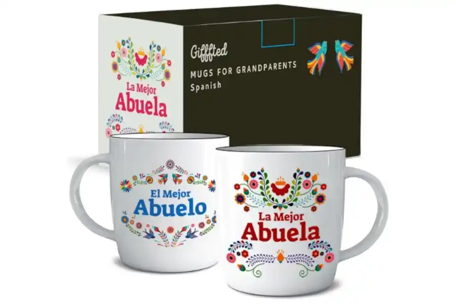 Sorprende y emociona a tus abuelos con este pack de tazas. Su diseño colorido y su frase emotiva seguro que les encantarán. Están fabricadas en cerámica y cuentan con una capacidad de 380 mililitros.