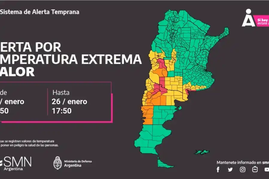 El Servicio Meteorológico Nacional (SMN) renovó para este viernes sus alertas por calor extremo para zonas de al menos nueve provincias, en el marco de un verano que se mantiene con altas temperaturas.