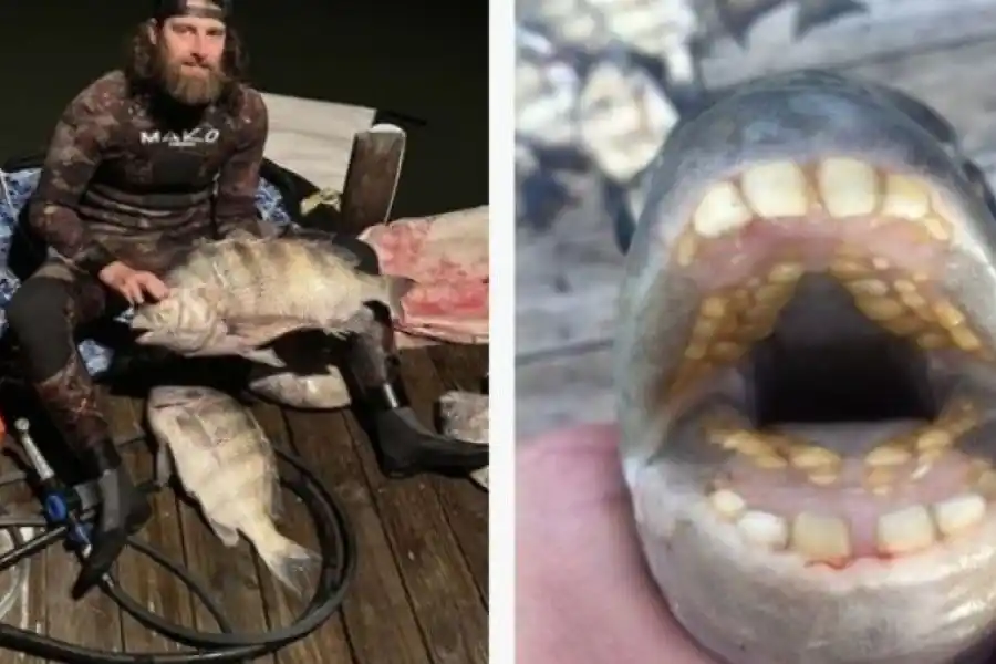 El buzo Todd Elder quedó sorprendido cuando pescó un extraño pez con dientes parecidos a los humanos de más de 7 kilos en la bahía de Chesapeake, Estados Unidos.
