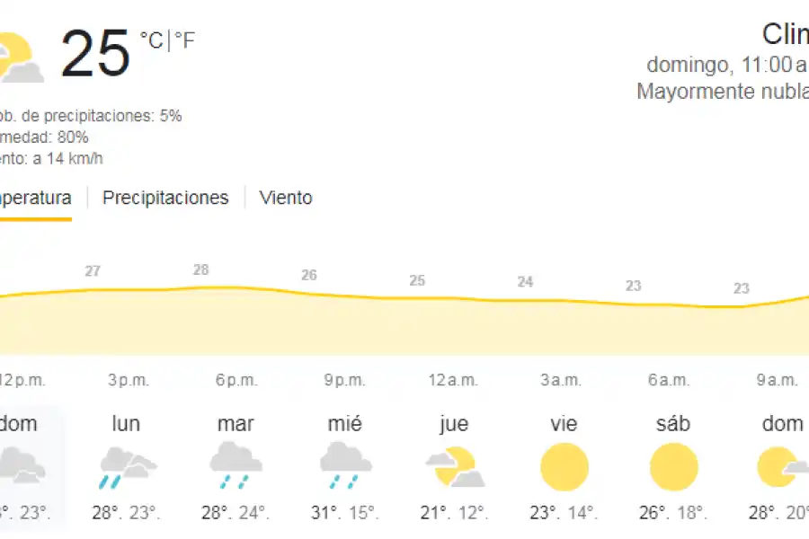 Con una temperatura mínima de 22 ºC y una máxima de 30 ºC, tendremos algunos grados más que en el día de ayer pero las posibilidades de precipitaciones siguen latentes. Más detalles del tiempo acá.