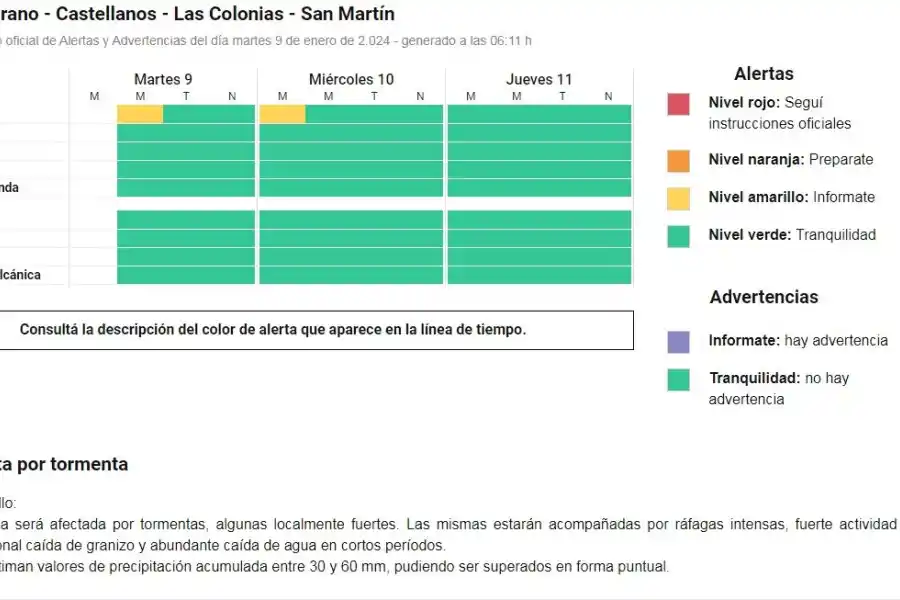 Renovaron el alerta a corto plazo por tormentas en Rafaela y emitieron un Alerta Amarillo