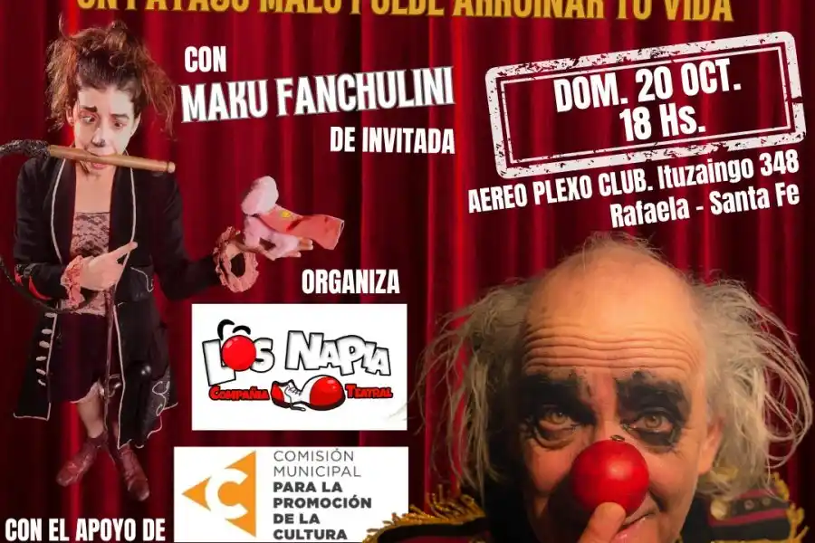 El domingo 20, a las 18 horas, ambos payasos presentarán su espectáculo, cuyo título provocador es "Un payaso malo puede arruinarte la vida". ¡No te lo pierdas!