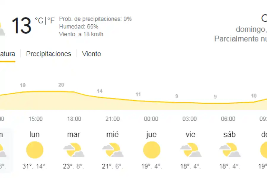 Para el día de la fecha se estima una temperatura mínima de 8 ºC y una máxima de 21 ºC, con cambios en las ventosidades.
