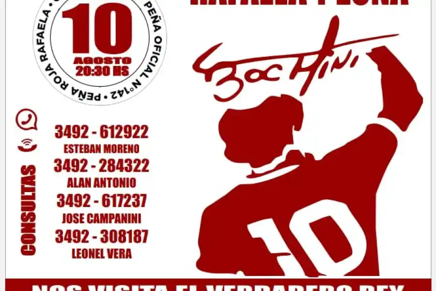 La Peña Roja Rafaela Gabi Milito, encabezada por su presidente Alan Antonio, ha logrado traer a la ciudad a varios ídolos históricos de Independiente. Este año, con motivo del décimo aniversario de la peña, han logrado concretar la presencia de Bochini, considerado uno de los máximos ídolos del club. "Es traer al máximo ídolo de Independiente. Es una figura irrepetible," expresó Alan.