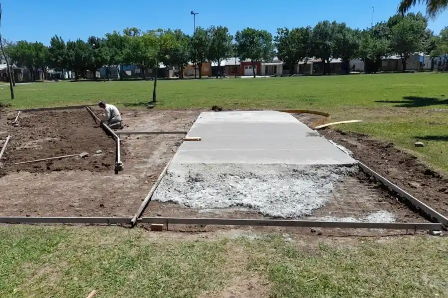 Se iniciaron los trabajos para la colocación de tres estructuras didácticas en la plaza Progreso del barrio Mora. Próximamente continuarán las tareas en otros cuatro sectores de la ciudad.