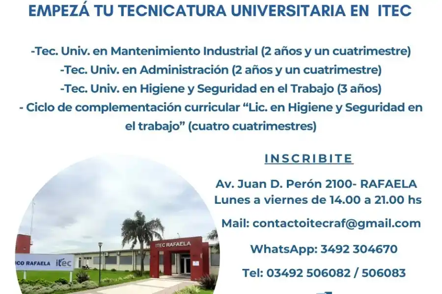 Inscripciones Abiertas en el ITEC Rafaela para Carreras Universitarias con Salida Laboral Rápida