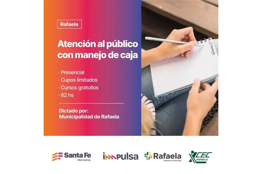 En el marco del programa provincial Impulsa y en colaboración con el Centro de Empleados de Comercio, la Oficina de Empleo Municipal anuncia la apertura de inscripciones para el curso "Atención al Público con Manejo de Caja", que se dictará de manera presencial los días martes, de 13:00 a 17:00.