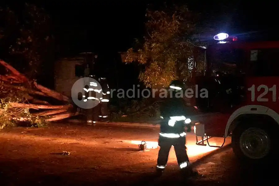 En barrio San Martín, sobre calle Viamonte al 400 aproximadamente, cayó otro árbol, pero causó problemáticas en el ingreso de un hogar porque obstruyó totalmente el ingreso. Para ello, los Bomberos cortaron con motosierras y lo apartaron del lugar.
