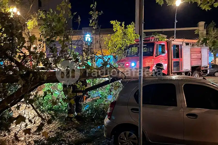 También, sobre calle Faraudello al 1300 aproximadamente un árbol de gran tamaño cayó sobre un automóvil Fiat Palio que terminó con destrucción total.