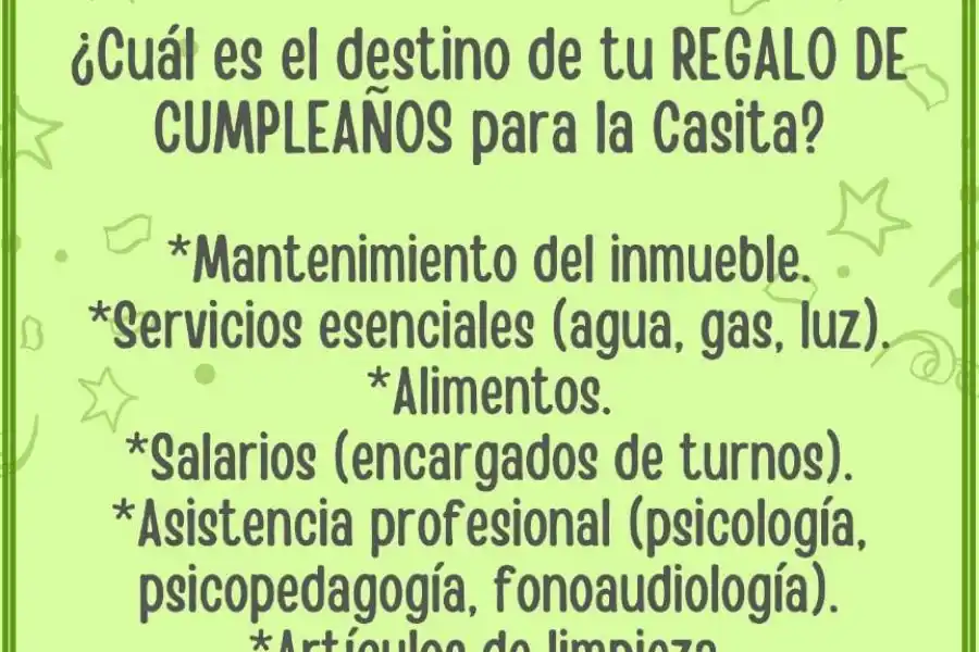 “Para esta oportunidad, se nos ocurrió pensar en el regalo para la Casita del Niño que pueden hacer todos aquellos que quieran sumarse con un aporte voluntario del monto que puedan por única vez”, contaron.