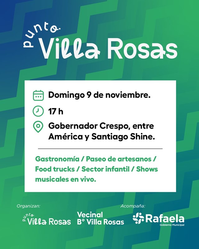 El próximo domingo 9 de noviembre, el barrio Villa Rosas se prepara para celebrar una nueva edición de “Punto Villa Rosas”, una propuesta que busca promover el encuentro vecinal, la gastronomía y la actividad comercial local.