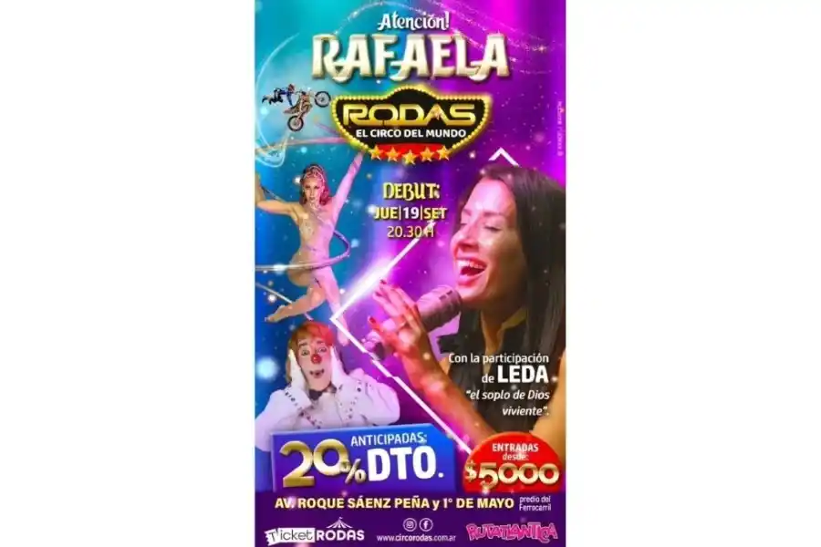 La sanadora tenía previsto llegar a Rafaela este jueves 19 de septiembre en su faceta como cantante católica. Todo estaba preparado para que sea parte del show debut del Circo Rodas en la ciudad. Sin embargo, en este martes anunciaron la cancelación del espectáculo.