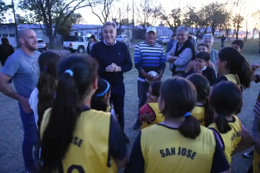 Esta semana, el intendente Luis Castellano visitó la Escuelita Deportiva Municipal del barrio San José. Estuvo acompañado por el subsecretario de Deportes y Recreación, Ignacio Podio; el secretario de Gobierno y Participación, Jorge Muriel; y la secretaria de Ambiente y Movilidad, María Paz Caruso.