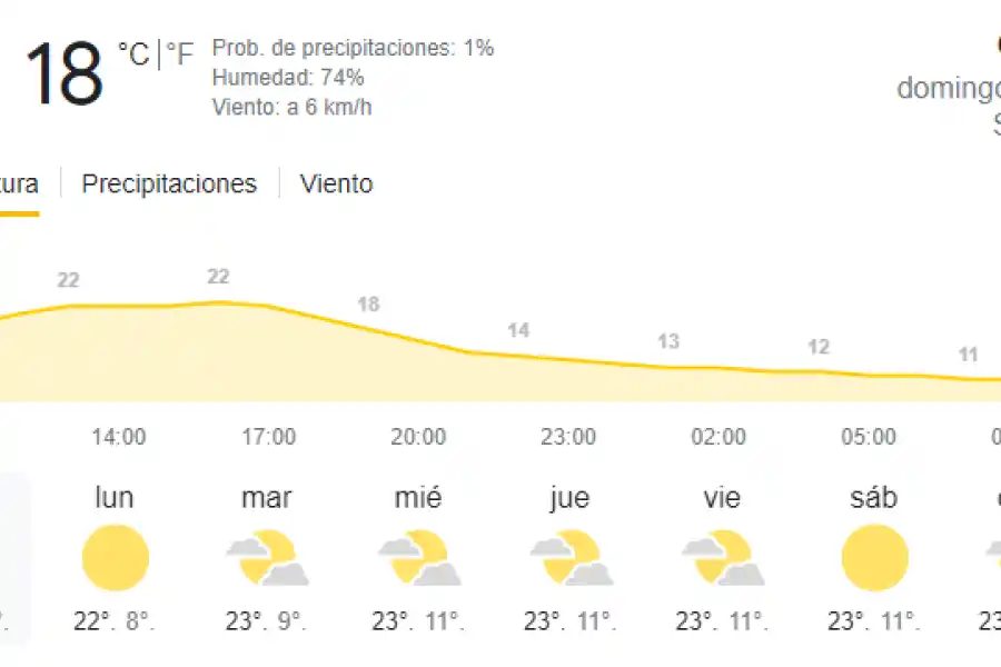 Durante el día el viento provendrá del sector Este para luego, con el correr de la jornada, cambie y sople desde el sector Norte. No habrá grandes ráfagas de viento y se mantendrá en una velocidad estable de entre 12 y 19 km/h.