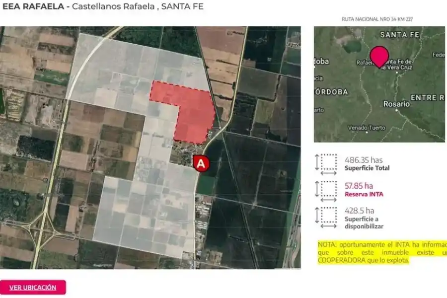 Uno de los documentos, que detalla la cantidad de hectáreas que se ponen “en disponibilidad” en cada dependencia, precisa que de las 486.35 hectáreas del INTA Rafaela sólo se preservarían casi 58 (57.85) y se venderían o arrendarían (temporalmente, previo a su subasta, en una instancia posterior) 428.5 hectáreas. Vale decir que también se menciona que “el INTA ha informado que sobre este inmueble existe una Cooperadora que lo explota”, ya que en otro archivo se plantea que para 2025 otro objetivo del plan es “Identificar Cooperadoras ineficientes y cerrarlas”. La misma indicación se hizo sobre la EEA Reconquista, donde se plantea conservar sólo 56 de las 1.301 hectáreas, dejando en disponibilidad 1.245. En la lista, conformada por más de 20 de inmuebles, se cita al pié: “Toda la información provista en el presente es confidencial. Las imágenes, planos, medidas, valores y demás especificaciones no son de carácter vinculante. Las mismas son aproximadas y a título informativo e ilustrativo”.