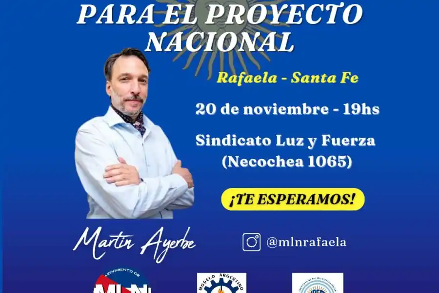 Cabe destacar que el entrevistado, Martín Ayerbe, visitará la ciudad de Rafaela el próximo 20 de noviembre a las 19:00 hs en el Sindicato Luz y Fuerza (Necochea 1065), donde dara una charla titulada "Modelo Argentino para el Proyecto Nacional".