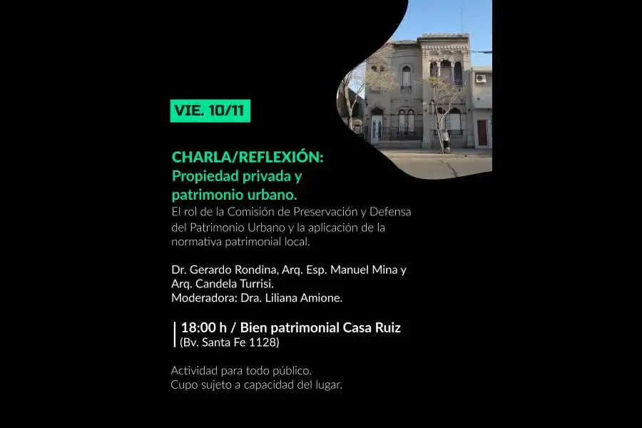 Entre las actividades previstas, el sábado 18 de noviembre se realizará un circuito urbanístico que saldrá desde ese lugar. No obstante, las actividades se van a realizar a cabo este mes y también en diciembre, "arrancamos mañana viernes 10 a las 18 horas con una charla reflexión y debate entre abogados, arquitectos interesados, sobre propiedad privada y patrimonio urbano".