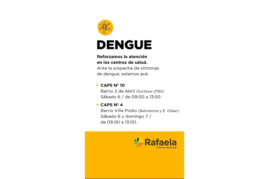El Gobierno Municipal lleva adelante iniciativas para responder a la propagación del dengue en la ciudad de Rafaela. Es por eso que se decidió reforzar la atención en los Centros de Salud barriales.