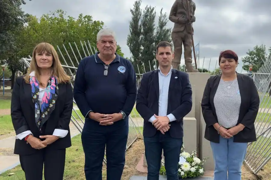 "Junto a los ex combatientes de Malvinas, sus familiares y a todo el entramado institucional rafaelino, vinimos a hacer entrega de una ofrenda floral en la Plaza del Soldado, en barrio Malvinas Argentinas", manifestó Viotti.