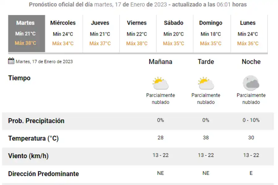 Teniendo en cuenta la advertencia, se recomienda extremar los cuidados al sol y al calor. Al mismo tiempo, el SMN informa que la jornada se mantendría parcialmente nublada con vientos que no superarían los 22 kilómetros por hora predominantemente del sector Noreste y Este.