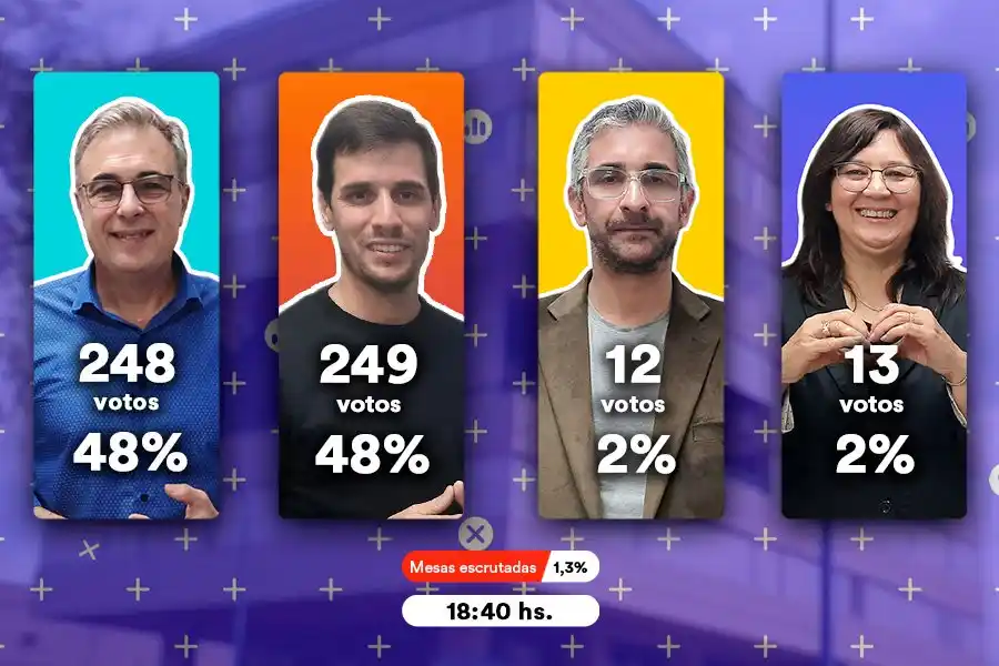 Con nuevos resultados de mesas que se dan a conocer a solo 40 minutos de la finalización de los comicios, se achica la diferencia entre Castellano y Viotti. En este caso, ambos candidatos se consolidan como los más votados, solo con un voto de diferencia.