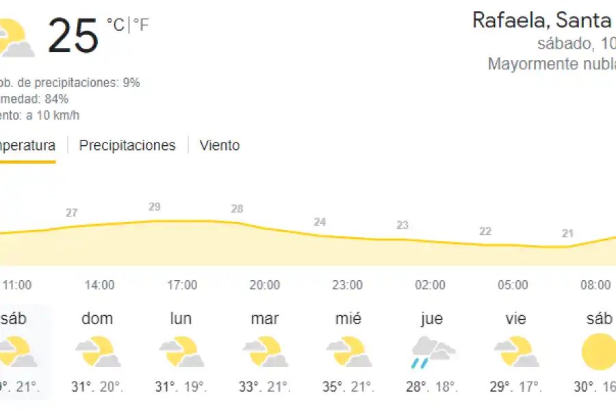 Con un cielo parcialmente nublado, la temperatura actual a media mañana ronda los 24/25 ºC, con un viento proveniente del sur-este a velocidad promedio de 13 km/h. Algunas ráfagas incluso alcanzarán los 29 km/h.