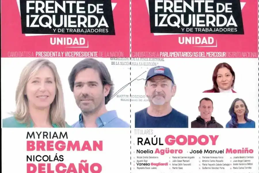 El Frente de Izquierda y de Trabajadores-Unidad (FIT-U) mantuvo la foto, pero hubo algunas pequeñas modificaciones en la tipografía y los colores que se utilizaron para los nombres.Fueron oficializadas el 27 de septiembre. Cuatro fórmulas presentaron fotografías distintas a las de agosto y una mantuvo la misma, con los cambios obvios de fecha y cargo: ya nadie se postula como precandidato o precandidata, esa carta se jugó en las primarias.