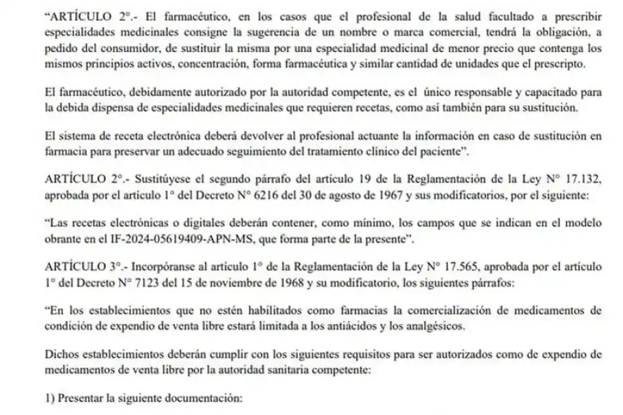 El mismo artículo, que reconocía al farmacéutico como "el único responsable y capacitado para la debida dispensa de especialidades farmacéuticas" con receta, ahora también lo contempla como apto para sustituirlas.