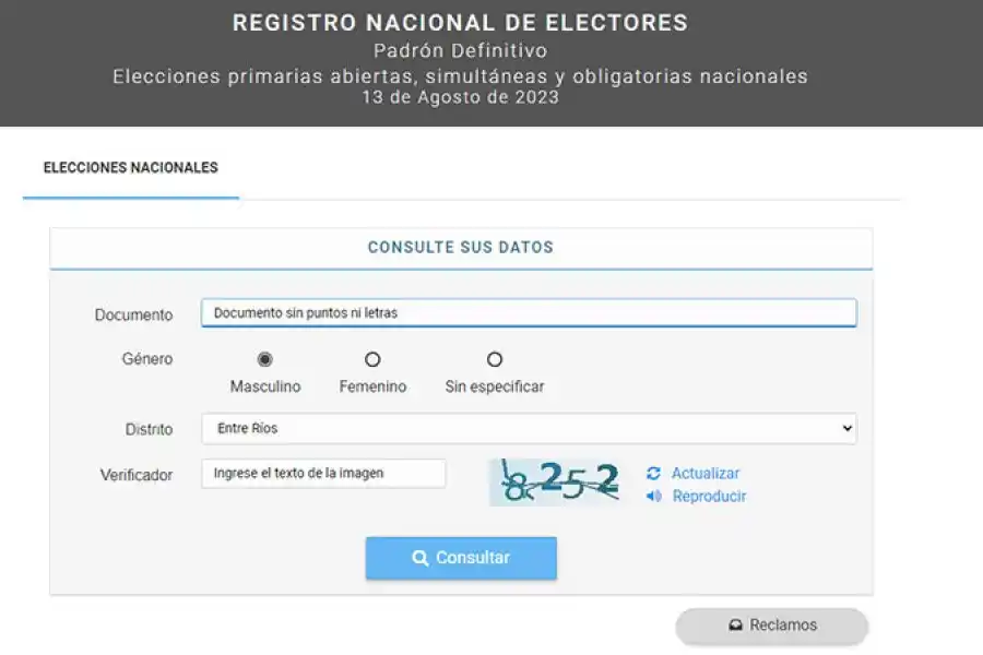 La Cámara Nacional Electoral (CNE) informó a mediados de julio que ya estaba disponible el padrón definitivo para las elecciones nacionales 2023 que, en el caso de Entre Ríos, también incluye las provinciales.