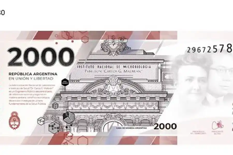 El nuevo billete llevará como imagen de homenaje a Cecilia Grierson, considerada la primera médica argentina y con el ex ministro de Salud y referente del sanitarismo argentino Ramón Carrillo y en el otro lado, una imagen de la fachada del Instituto Malbrán. Se trata de un diseño que ya existía con anterioridad, por lo que el Gobierno decidió utilizarlo para acortar los tiempos para la salida a circulación.