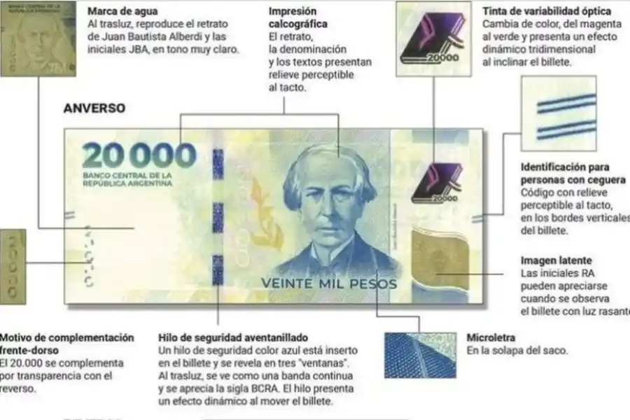 El billete incluye un relieve en los bordes verticales, pensado para facilitar su identificación por personas con ceguera o disminución visual.