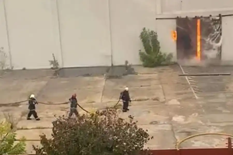 Las primeras imágenes circularon rápidamente por Whats App entre los vecinos del lugar. Según se supo, los equipos de emergencia ingresaron al lugar mediante el empleo de sierra circular ya que el interior del deposito se encontraba cerrado.