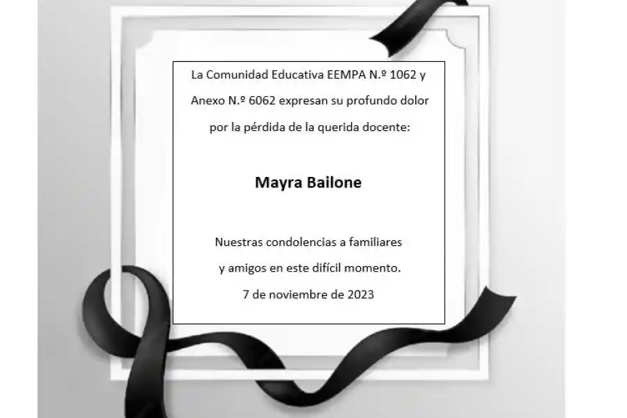 La mujer, identificada como Mayra Bailone, era una docente muy querida en el ámbito educativo de San Francisco y sus alrededores. Además, era madre de una niña. La noticia de su fallecimiento conmocionó a la comunidad, y las redes sociales se llenaron de manifestaciones de dolor por su pérdida.