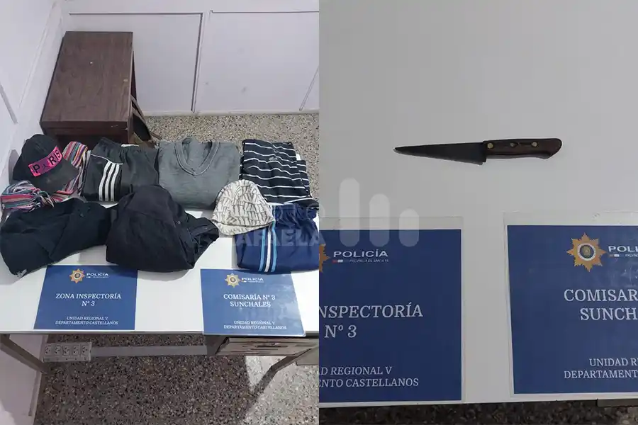 Con la presencia de testigos, se procede a la apertura de un bolso de nylon negro en el que encontraron un arma de fuego de fabricación casera, denominada “Tumbera”, un cuchillo, varias prendas de vestir, dinero por un total de 1700 pesos, un regulador de gas, cerveza y otros elementos que también fueron secuestrados.