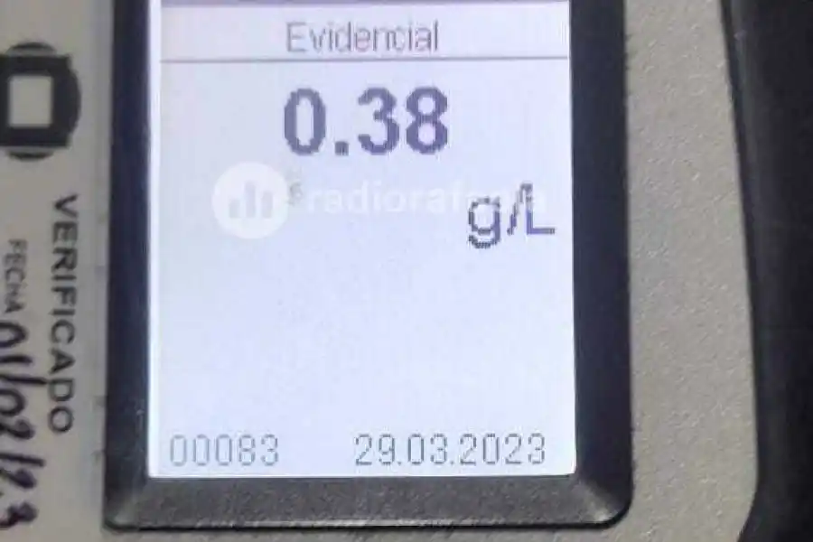 Fue retenido por las fuerzas presentes y se procedió a realizarle el correspondiente Test de Alcoholemia, arrojando como resultado positivo 0,38 G/L.