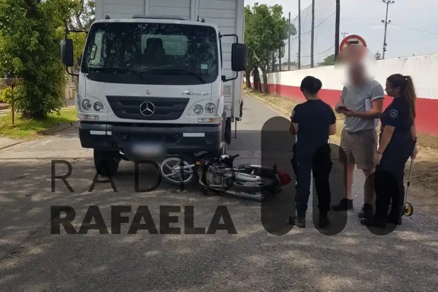 Chocaron una moto y un camión en barrio Fasoli: un menor sufrió lesiones