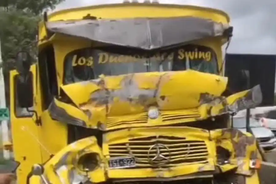 Esta mañana, ocurrió un choque en ruta 9 en el peaje de Zárate sobre autopista Buenos Aires – Rosario. El micro, perteneciente a la banda de Sergio Torres realizaba una gira en la provincia de Buenos Aires.