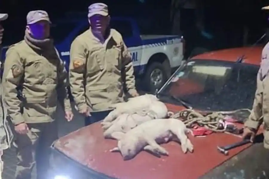 El control del vehículo se llevó a cabo en medio de la calle, y lo que los policías hallaron en su interior dejó a todos perplejos. Dentro del automóvil se encontraron tres lechones faenados y un ternero reposando en la parte trasera del mismo.