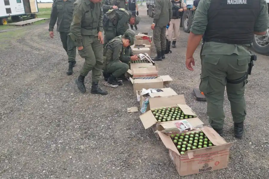 Los uniformados detectaron las cajas ocultas en el acoplado del rodado, donde se transportaba soja a granel.