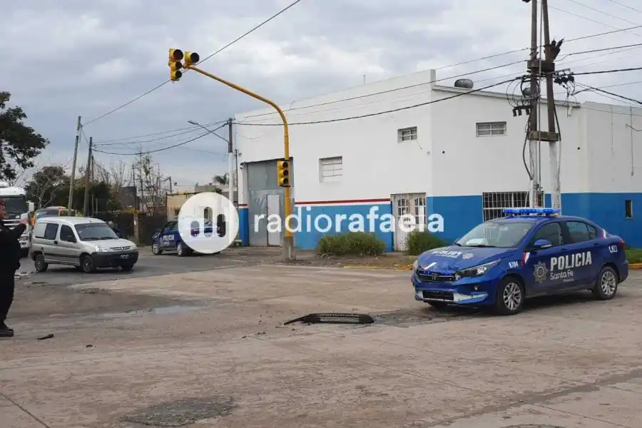 Según la información obtenida por RADIO RAFAELA DIGITAL en el lugar, una camioneta Partner que se desplazaba por la calle Perú en dirección Sur-Norte fue impactada en uno de sus costados por un patrullero que transitaba por Luis Maggi en dirección Este-Oeste.