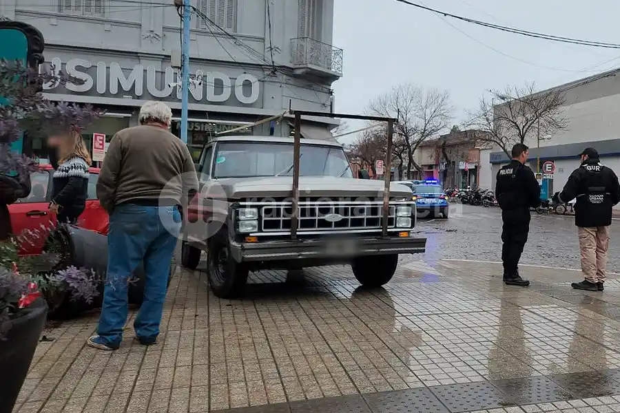 Fuerte choque en pleno centro: una camioneta terminó en medio del cantero