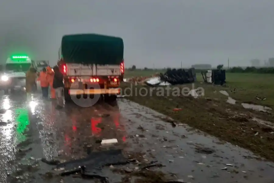 Por causas que se tratan de establecer, impactaron violentamente dos vehículos. Los involucrados fueron un camión Scania con Semi cargado con frutillas de exportación, conducido por un masculino de 49 años domiciliado en Provincia de Buenos Aires, y una camioneta Toyota Hilux conducida por un masculino.