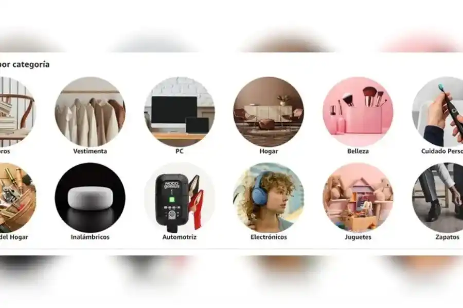 Libros (no tienen impuestos)-Vestimenta- PC-Hogar (decoración)-Belleza (máscaras, serums, organizadores)-Cuidado personal (irrigadores dentales, máquinas de afeitar, depiladoras)-Mejoras del hogar (herramientas, cabezales de ducha, detectores de dióxido de carbono)-Inalámbricos (auriculares, joysticks, baterías portátiles)-Automotriz-Electrónicos (asistentes de voz, cámaras de seguridad, bombillas y focos inteligentes)-Juguetes-Zapatos y zapatillas.