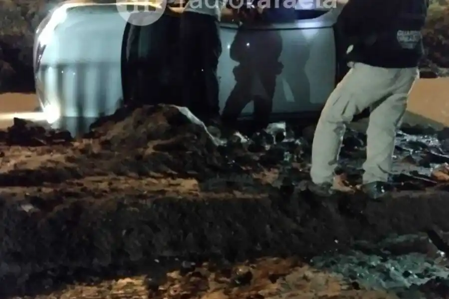 Impactante accidente en la madrugada: un automóvil terminó volcado a la vera de la Ruta 70