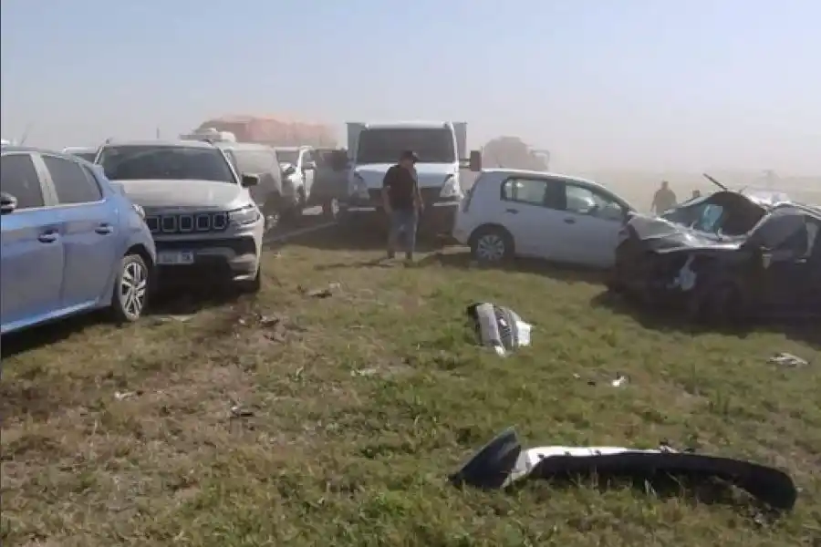 El grave accidente se produjo alrededro de las 14.40 de este lunes, en el kilómetro 330 de la autopista, en ambas manos. En ese momento, la región era azotada por una fuerte tormenta de viento y tierra, que dejó sin visibilidad a los conductores.