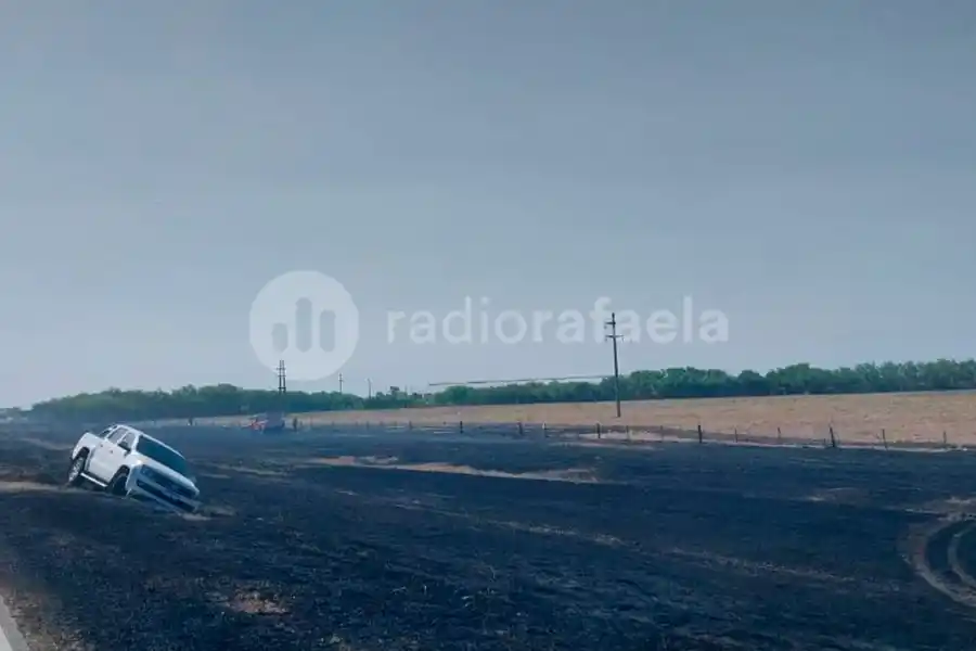 Incendio en la banquina de la Ruta Nacional 34 terminó con una camioneta accidentada