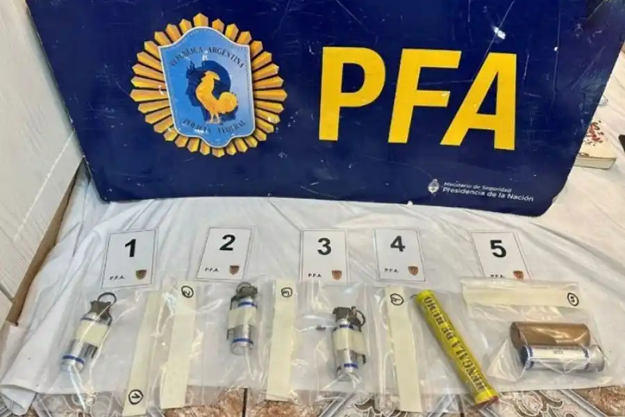 En la vivienda allanada, la PFA secuestró armas, municiones y explosivos, entre ellas una pistola calibre 22 con balas, 6 cartuchos de escopeta, 3 granadas de gas de hostigamiento, una bengala de humo, varias armas de aire comprimido, katanas y otras armas blancas de distintos tamaños, una faca; un importante volumen de bibliografía nazi, entre revistas, panfletos dibujos y un libro sobre asesinos seriales.